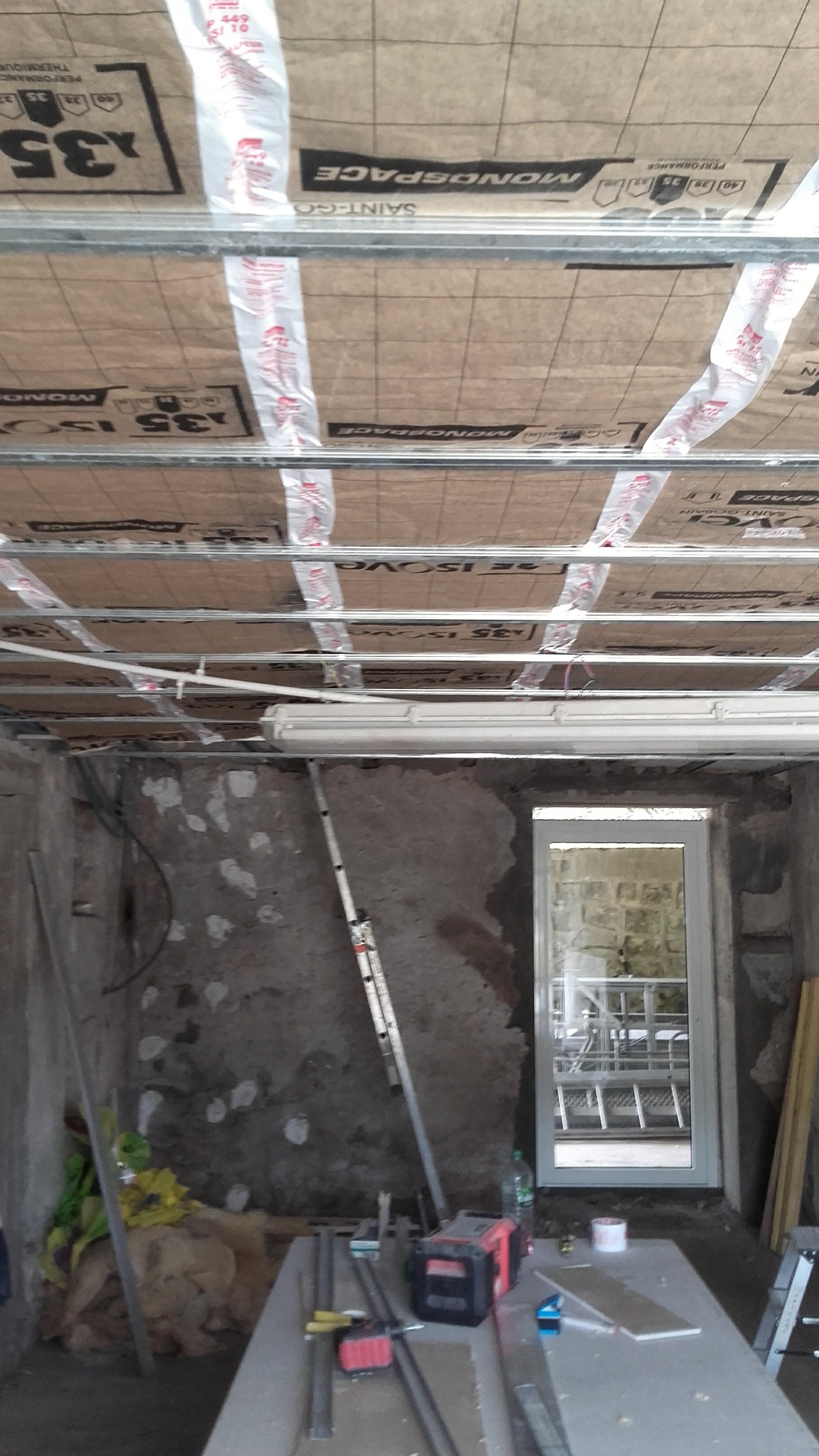 -Pose de cloison Sèche -Pose de plafond -Aménagement de combles, Sous sol -Aménagement divers, bar, étagères, cheminée de décoration... -Doublage sur ossature ou collé.